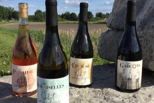 6 produits et 1 édition spéciale, un vin rosé LA PROMISE, un blanc élevé en cuve inox LES DEMOISELLES, un blanc élevé en fût de chêne L’ÉPOUSE, un rouge élevé en cuve inox LES GARÇONS, un rouge élevé en fût de chêne L’ÉPOUX et un mousseux de 15 mois d’élevage LA NOCE.